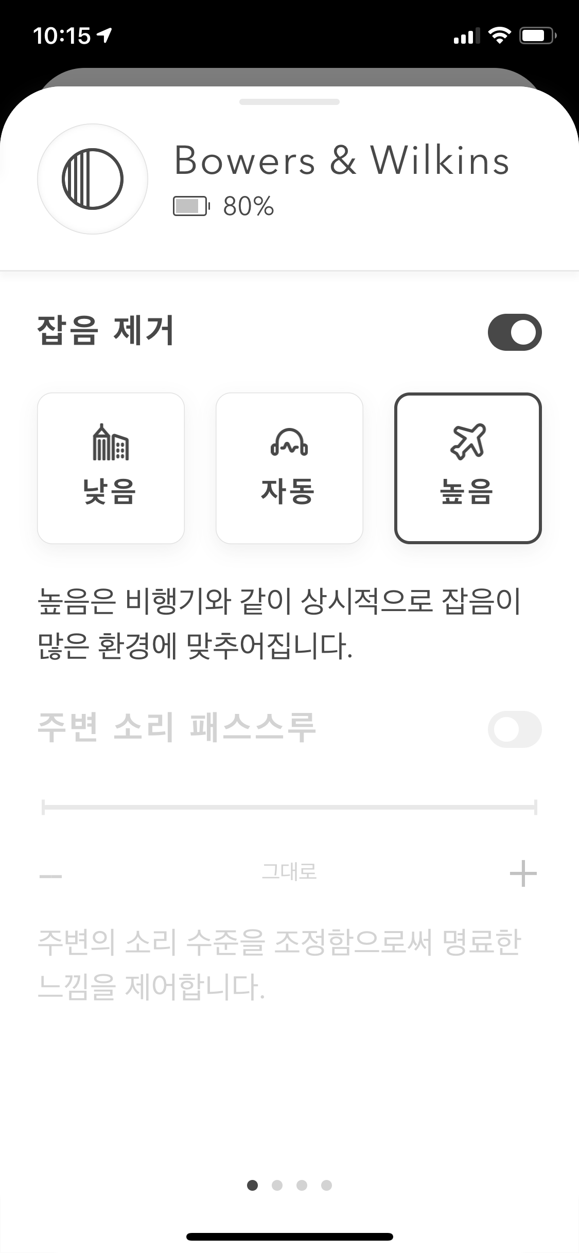 전작에서는 노캔 On Off의 성향이 너무 달랐는데 이제는 큰 변화없이 자연스럽게 들려준다. 마치 애플 에어팟프로의 그 기능처럼. 물론 헤드폰과 이어폰을 같은 범주에 넣고 비교할 수는 없지만.
