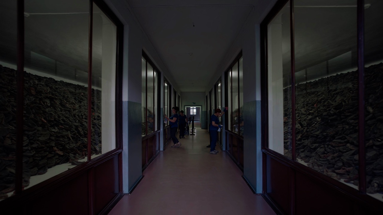 영화는 시종일관 저 벽 너머는 보여주지 않는다. 다만 평화로운 일상의 정원과 주택에서 바라보는 관점만 제시하고. 그리고 무슨 이유인지 모를(물론 우리는 알지만) 굴뚝에서 나오는 시커먼 연기들만 보여준다. 더불어 저 멀리 어디선가 계속 들려오는 총성과 비명 같은 어떤 소음들. 영화 내내 줄곧 깔리는 배경 소음 같은 것이지만, 역시 이를 화면으로 지켜보는 우리는 무엇인지 알지만, 스크린 속의 그들은 무감각 것인지 상관하지 않고 그들의 삶을 누리며 살아간다.
