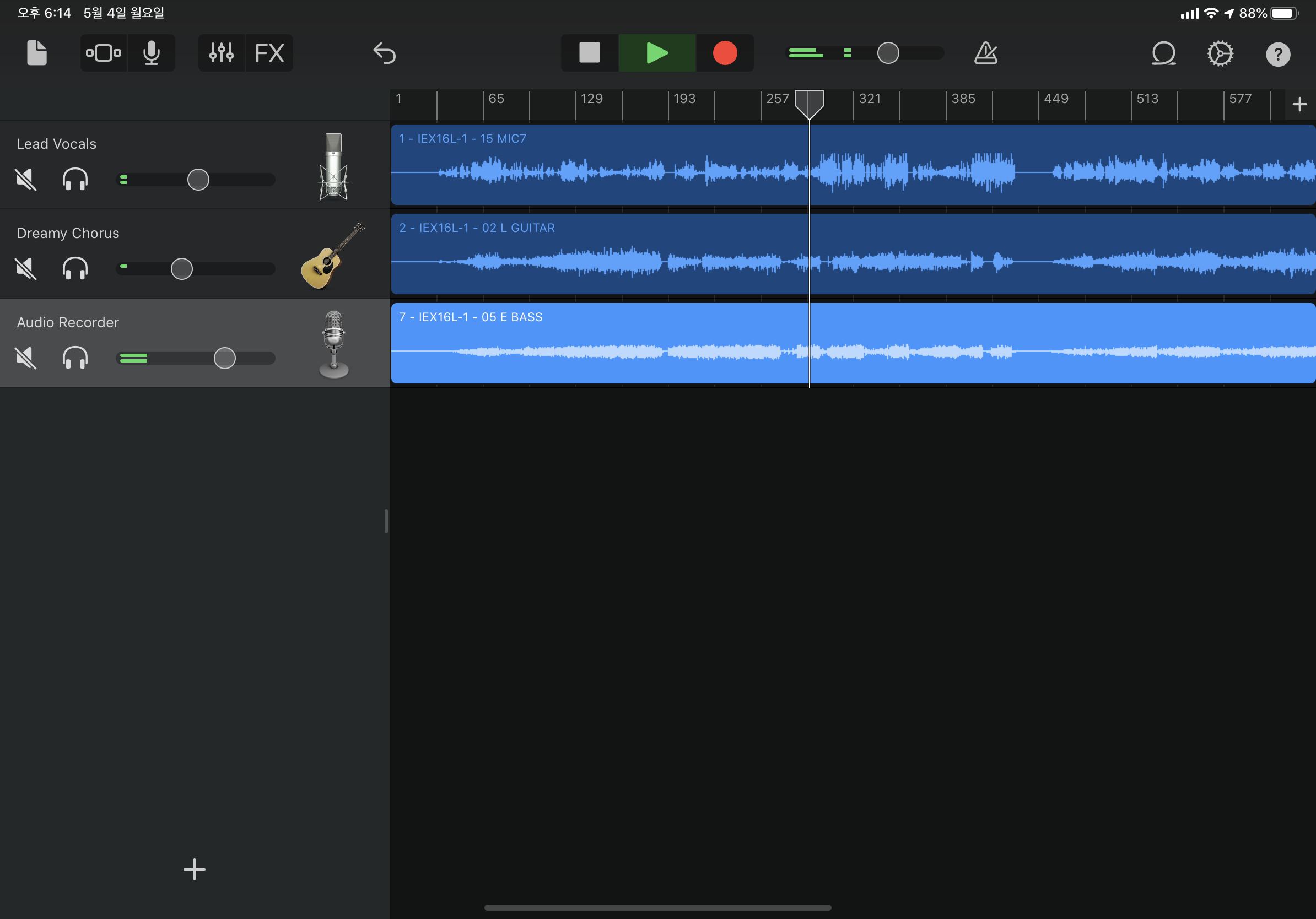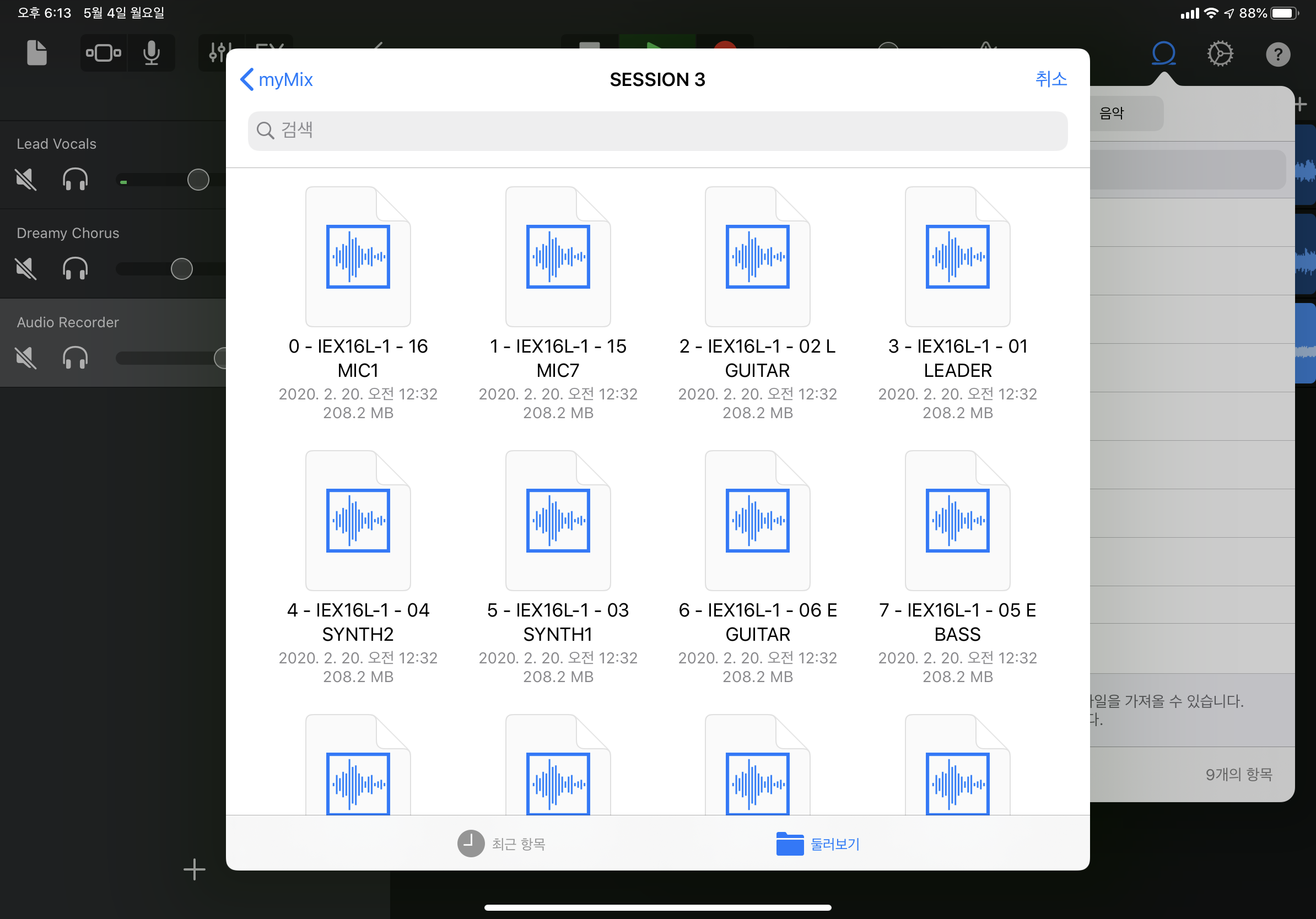 다만 아쉬운 점은 이제서야 외부환경과 하드웨어의 소통이 원활해지기는 했지만 소프트웨어가 페이스를 같이 못하고 있다. 좀 처지는 느낌이다. 예를 들어 교회에서 녹음한 멀티트랙 음원을 개러지밴드에서 작업하려고 하면 맥에서는 멀티트랙 음원들이(16채널) 포함된 폴더를 통째로 던져주면(drag&drop) 되는데 iOS 개러지밴드에서는 채널 하나하나를 일일이 넘겨줘야 한다. 터치 환경에 최적화되지 않아 불편한 점인데 점점 개선되지 않겠나 싶다. 다시 말 하지만 여기까지 해 준 것만 해도 어딘가! ㅎㅎ