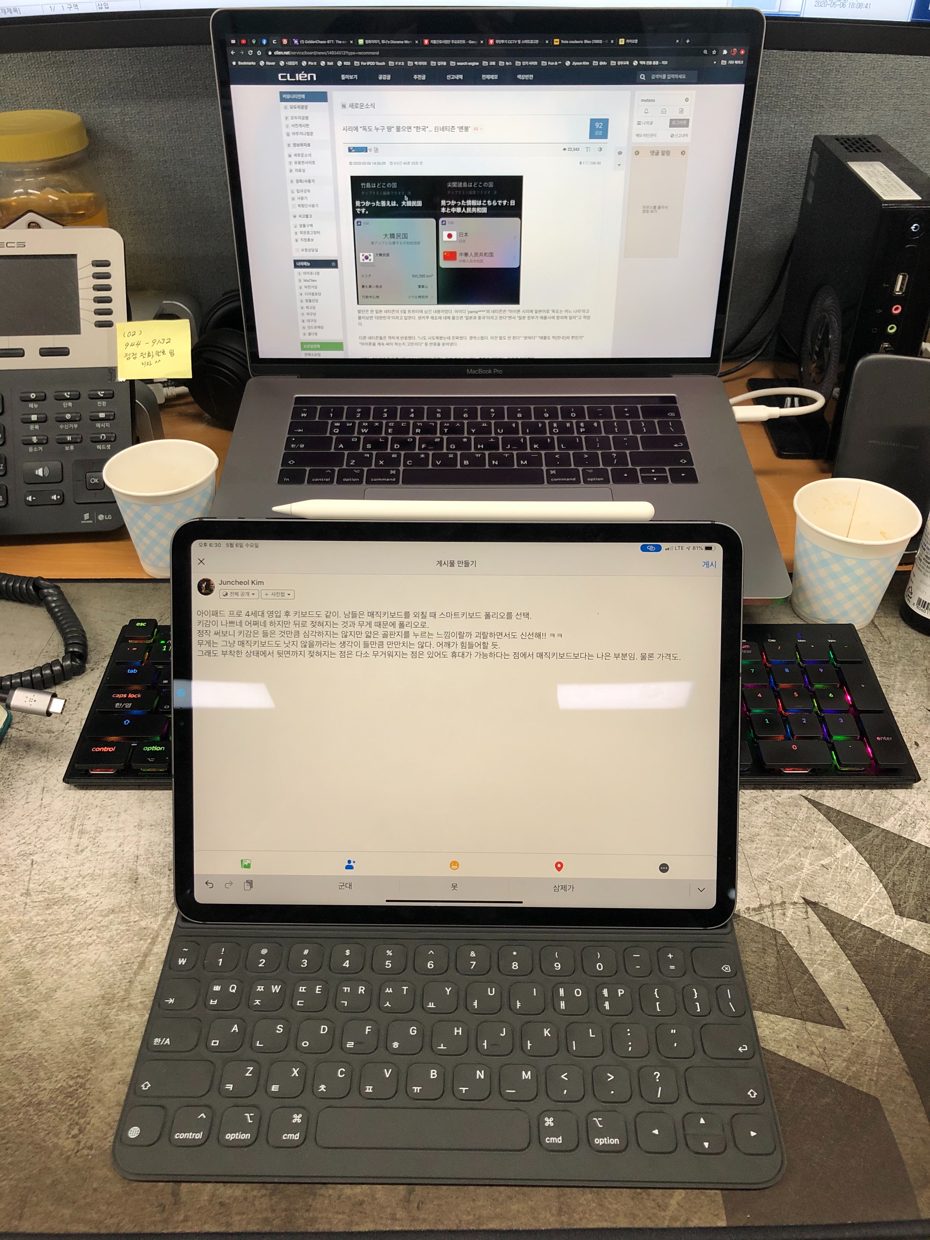 많은 리뷰에서 아이패드의 포지션에 대해 ‘아직... ‘어쩌고 하는데 개인적 견해로선 이미 지나서 딴 데로 가고 있는 것 같다. '물론 부족한 점이 있긴 하지만?', 그건 기존 pc환경에 익숙해서 느끼는 거다. 그냥 아이패드의 환경 안에서 바라보면 아이패드 1세대(2010)부터 써왔던 진성 애플빠로서는 초창기 버전과 지금의 아이패드는 마차에서 바로 전기차로 넘어가는 엄청난 차이를 보여준다. 만약 70~80년대 IBM이 아닌 애플이 주류였다면 아이패드의 시대는 훨씬 빨리 왔을지도 모르겠다. 아무튼 이러다 보니 맥과 아이패드의 위치가 애매해졌다. 처음에는 세 들어왔던 처지에서 이제는 집주인 행세를 하려 들지도 모른다는.